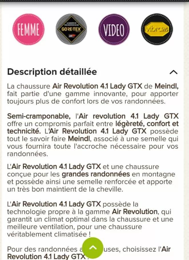 | Semelle | Vibram |
